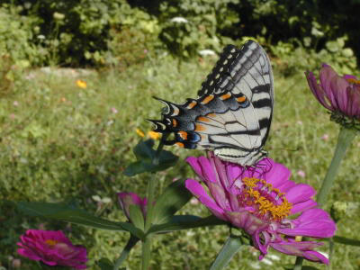 Anyway, we were there on Tuesday, to see how things had fared while we were gone and to plant some more seeds (I had intended to plant the second set of lettuce before we left, but I forgot). Fortunately, there had been a fair amount of rain while we were gone (and after we got back, for that matter), as proven by the presence of almost 3 inches of water in the rain gauge. So nothing had died of thirst. The grass was much longer and greener than it had been three weeks earlier.